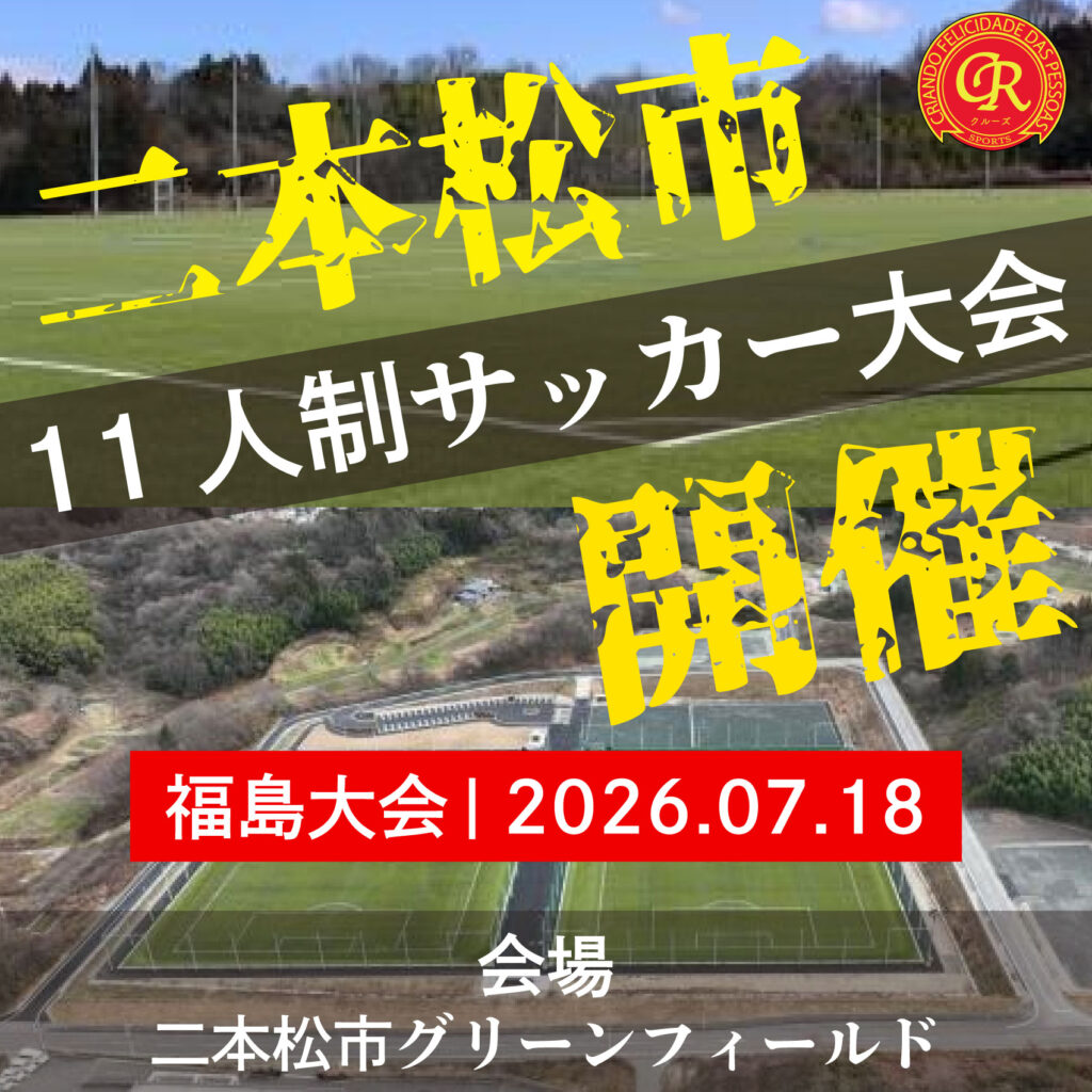 優勝賞品付きの11人制サッカー大会を開催します! 優勝商品が貰える「二本松市11人制サッカー大会」 最高の環境で11人制サッカーをたくさんプレー出来ます! 優勝チームは「背番号付きユニフォーム(人数分)」をゲット!
